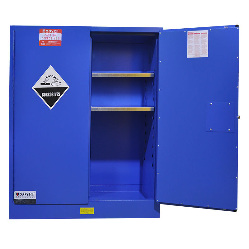 ארונות הבטיחות הכחולים של חברת JUSTRITE עוצבו ותוכננו במיוחד כך שניתן יהיה לאחסן בהם באופן בטוח חומרים קורוזיביים, חומצות, בסיסים וממיסים.